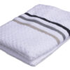 Enjoy the perfect combination of comfort and style with our Zero Twist White Cotton Bath Towel featuring color stripes. This 56x28 inch towel is made from high-quality cotton, offering exceptional softness and absorbency. The zero twist pattern of the fabric enhances its plush feel, making it gentle and comfortable. The colorful stripes on the white backdrop add a cheerful and modern touch to your bathroom. Designed for long-lasting use, this towel maintains its softness and vibrancy through many washes.
